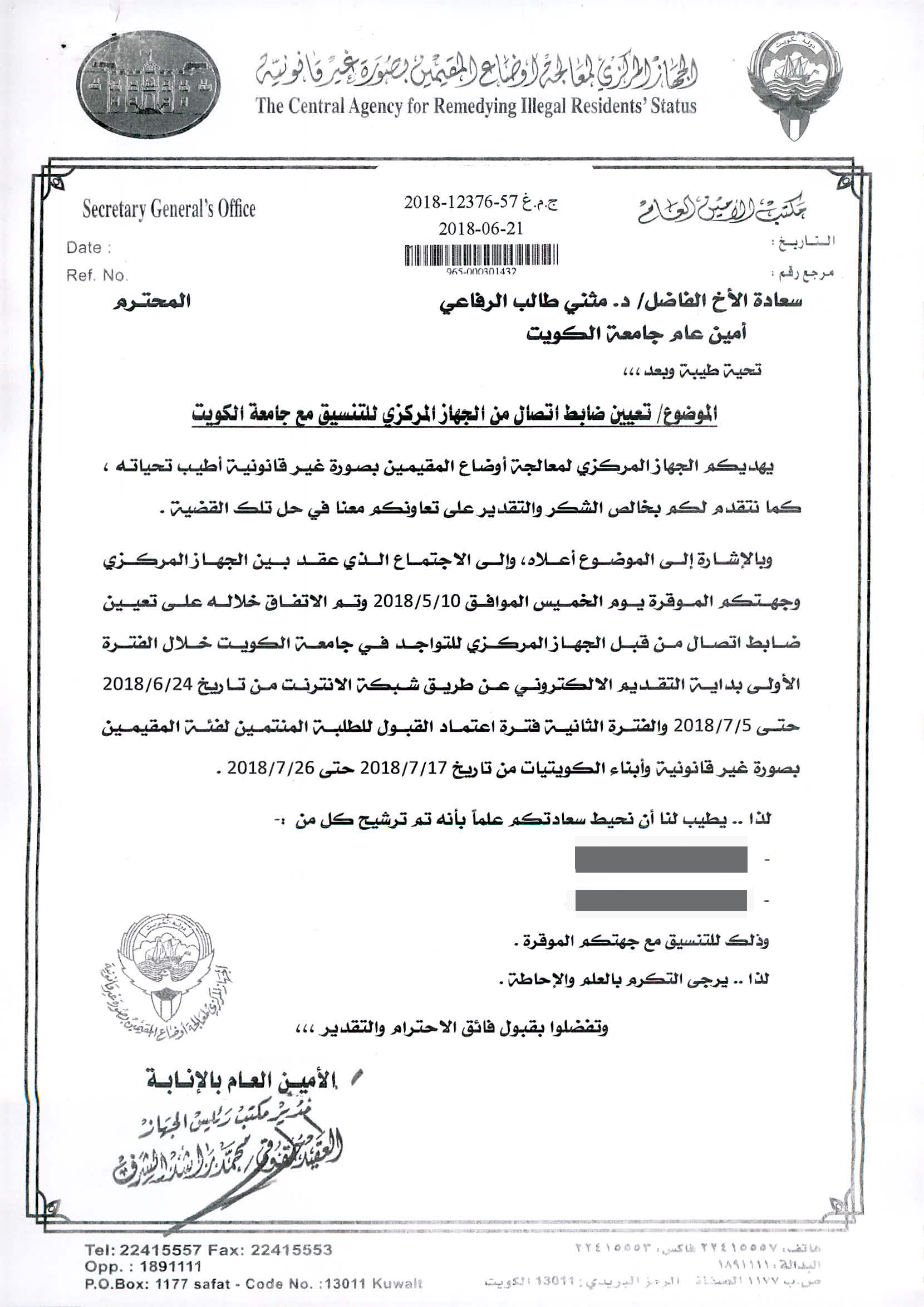 الجهاز المركزي للمقيمين بصوره غير قانونية ينتدب موظفين للتنسيق مع الجامعة