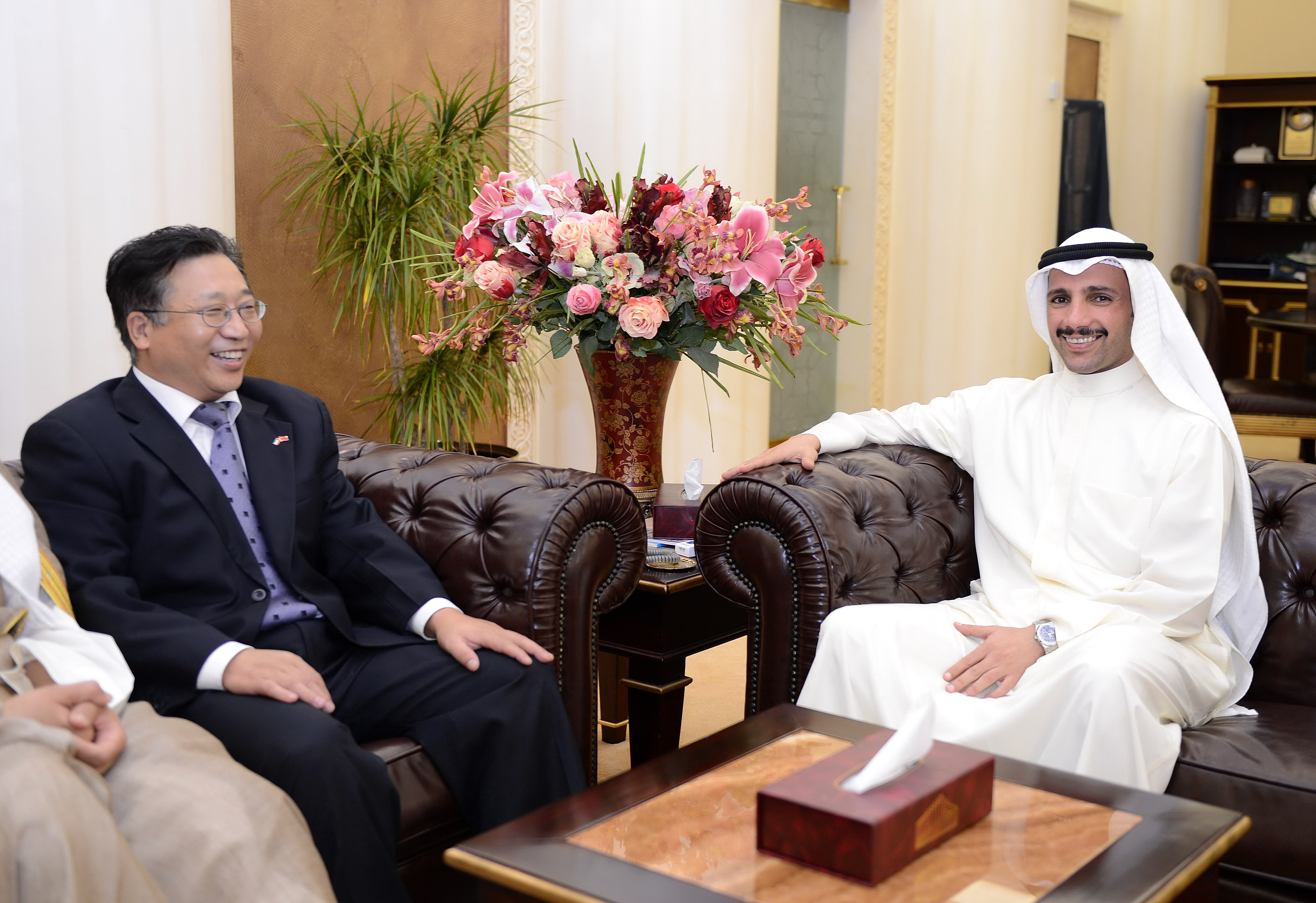 كما استقبل الغانم سفير جمهورية الصين الشعبية لدى دولة الكويت تسوي جيانتشون حيث جرى خلال اللقاء بحث العلاقات الثنائية بين البلدين الصديقين وسبل تعزيز أواصر التعاون المشترك بينهما.
