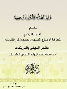 يتقدم  الجهاز المركزي لمعالجة أوضاع المقيمين بصورة غير قانونية بخالص التهاني والتبريكات  بمناسبة عيد  المولد النبوي الشريف.
